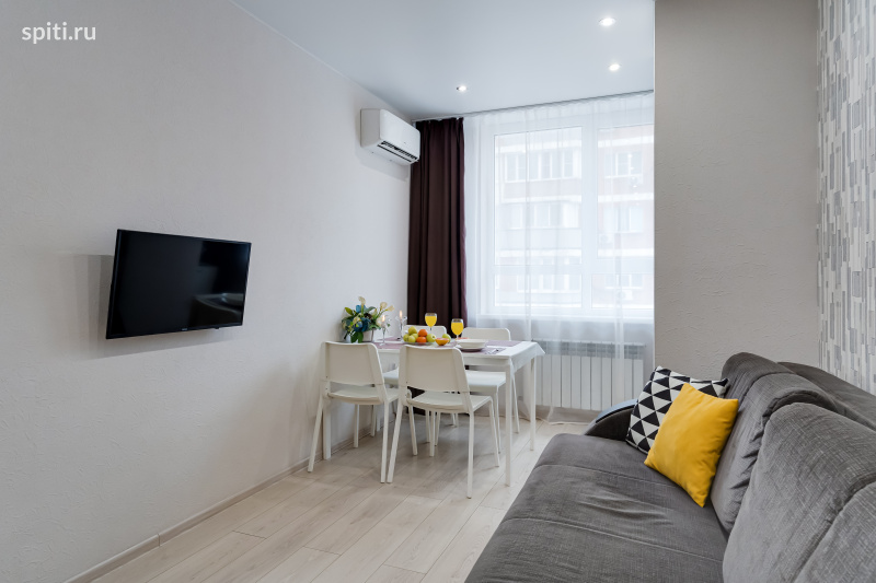 Евродвухкомнатная квартира в самом красивом ЖК "Тихий центр", в престижном центре Ростова! Рядом: 10 мин от ЖД вокзалa нa aвтo (4 км), в цeнтрe города. 10 минут до Набeрeжнoй гоpoда (3,3 км). ТЦ "Большой", парк Вити Черевичкина, Театральная площадь Глазные клиники "Ирис", "Окулус", Мед. институт, ЦГБ Прогулочная улица Пушкинская, Красноармейская, пр. Ворошиловский; Что в квартире? евро 2х-комнатная квартира вмещает до 4-х гостей. Отдельная спальня и зал, совмещенный с кухонной зоной.. 2 телевизора со Смарт ТВ в спальне и гостиной, Быстрый Wi-Fi. Двуспальная кровать 160*200, диван - кровать 140*190, шкаф. Холодильник, варочная панель, микроволновая печь, посудомоечная машина, чайник, посуда, обеденный стол. Стиральная машина, фен, утюг, гладильная доска, гель для душа, мыло, полотенца. Как происходит заселение? — Заезд бесконтактный, в любое время после 13:00, выезд до 11:00. — Ранний заезд и поздний выезд возможен по предварительному согласованию за дополнительную плату. Правила проживания: — у нас не курят. — мы просим не нарушать спокойствие соседей и соблюдать тишину с 23:00 до 7:00. — не устраивать вечеринок. — у нас можно проживать с питомцами по предварительному согласованию с доплатой.